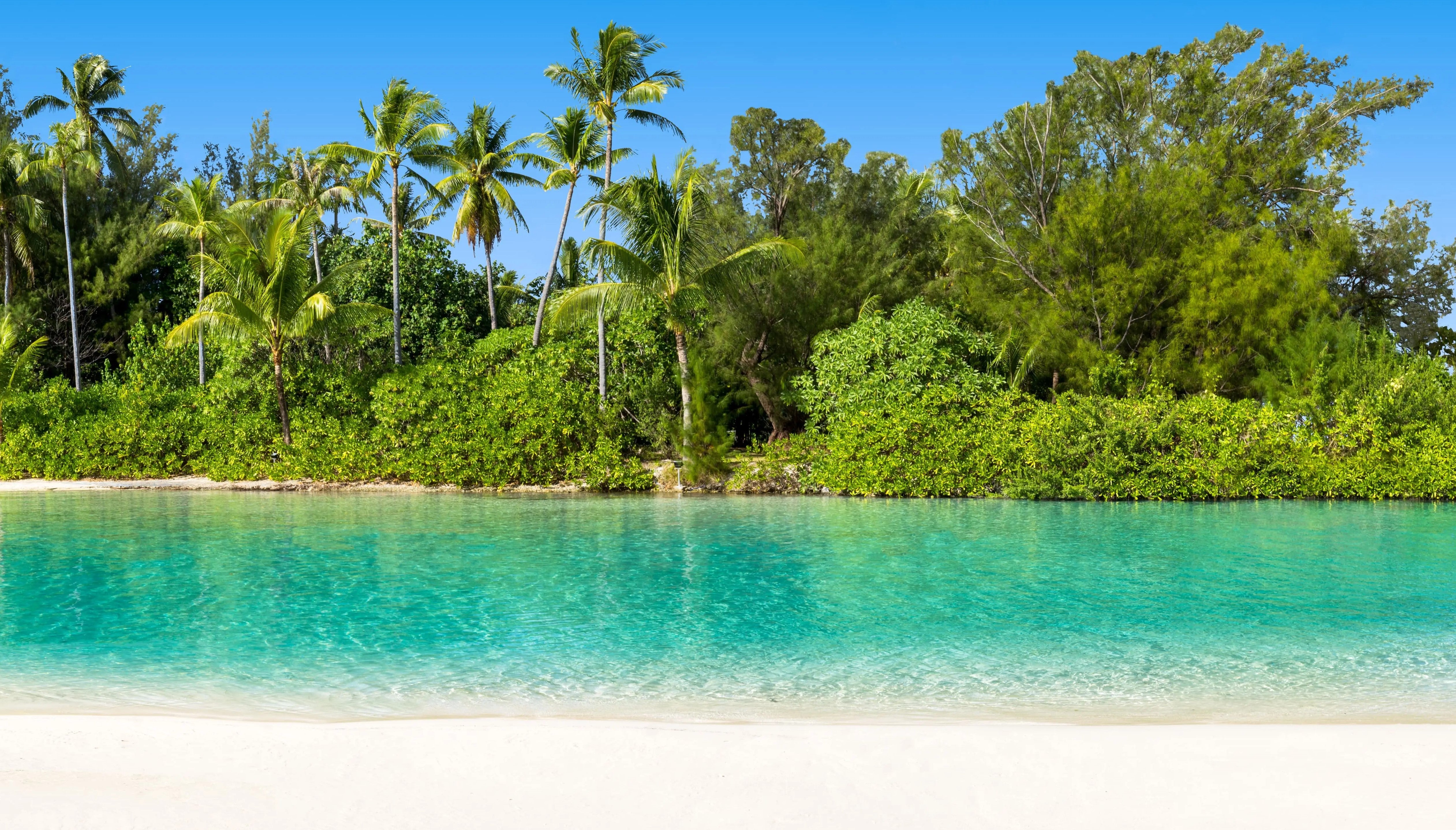 A pure, narcotic white flower emerges from the waters of a lagoon. Its heart, a coconut delight refreshed by green foliage, sways in the trade winds. Driftwood and shells, washed up on the beach, all is sun and white sand.